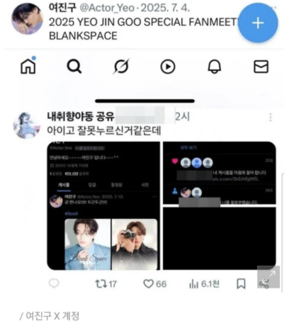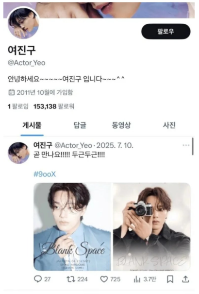 7월 24일, 온라인 커뮤니티를 중심으로 여진구의 공식 X 계정(구 트위터) 팔로잉 목록에