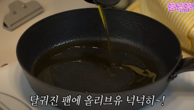 - 팬에 올리브유를 두르고 중불로 예열합니다.