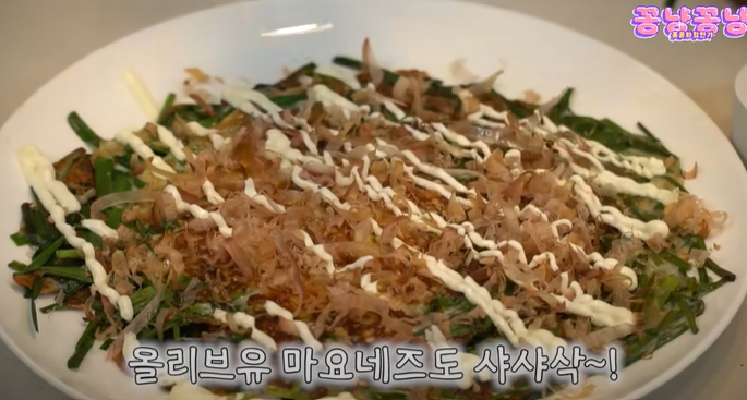- 치즈부처전위에 가쓰오부시. 마요네즈를 토핑 하면 됩니다.