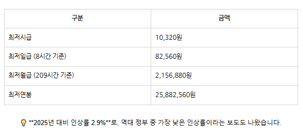 - 2026년 최저임금: 10,320원 (전년 대비 290원 인상)